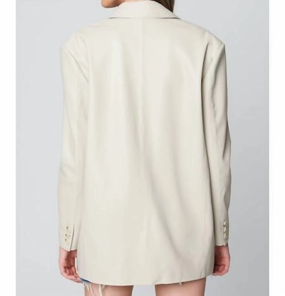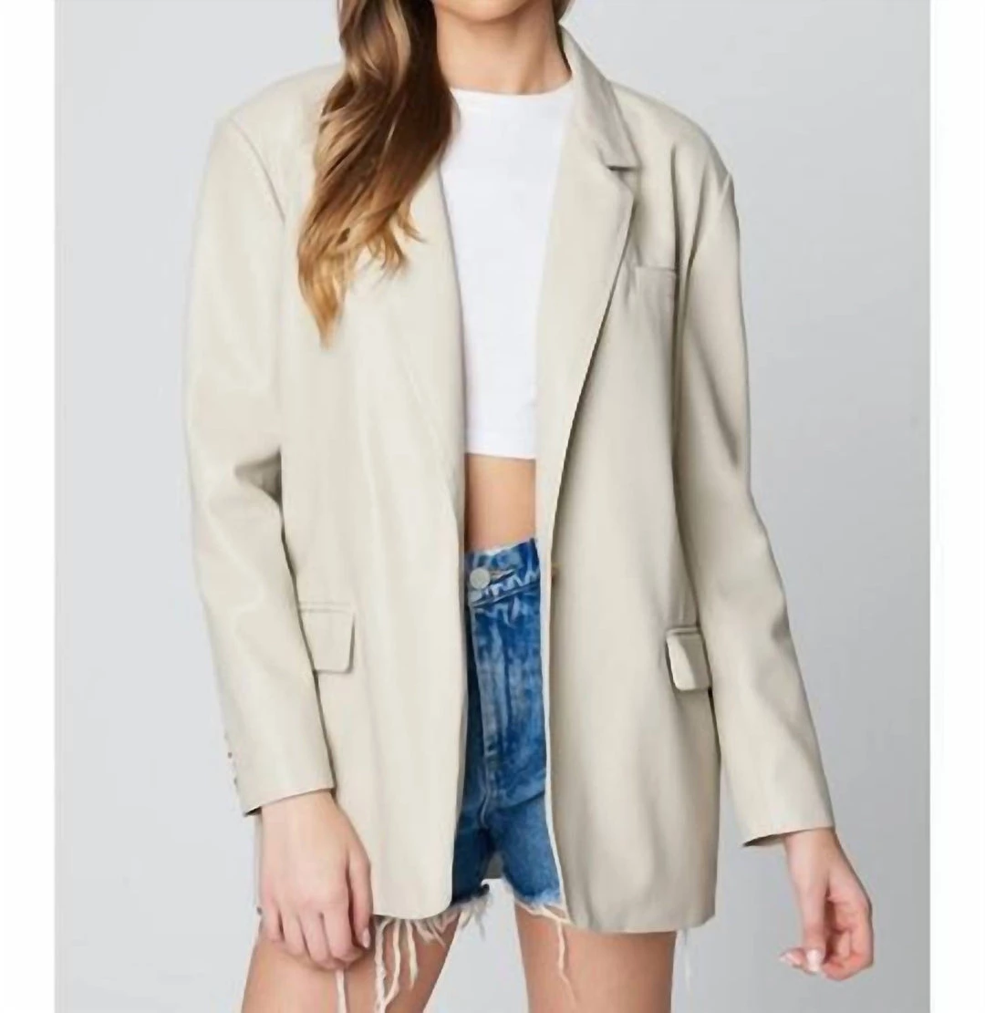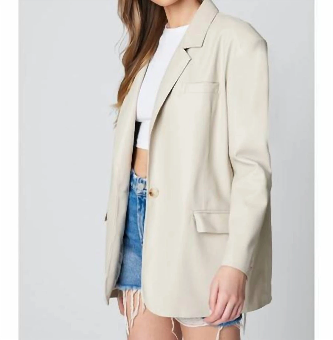 Classic with a twist, this bone color vegan leather blazer by BlankNYC is a fun alternative to your denim jacket. With its one button closure and BF look, this blazer will elevate your graphic tee and jeans combo, or layer over a dress for an instant update.
