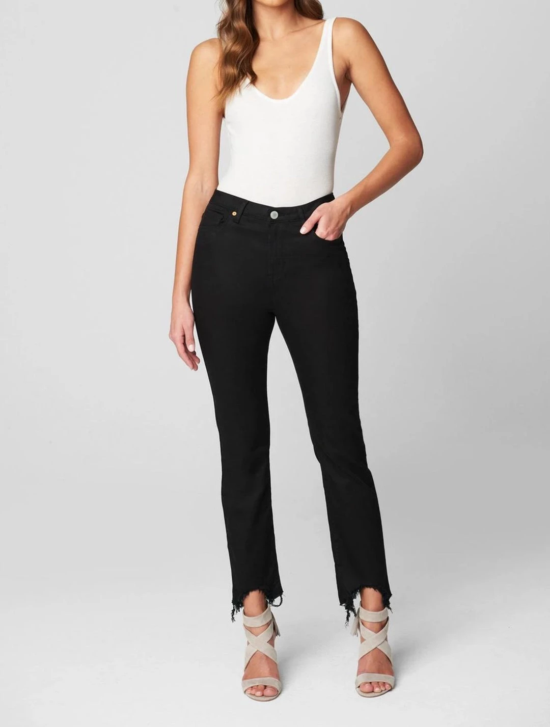 Black Madison Crop hi rise jean with unfinished hem.98% COTTON 2% SPANDEX.Sustainable denim.