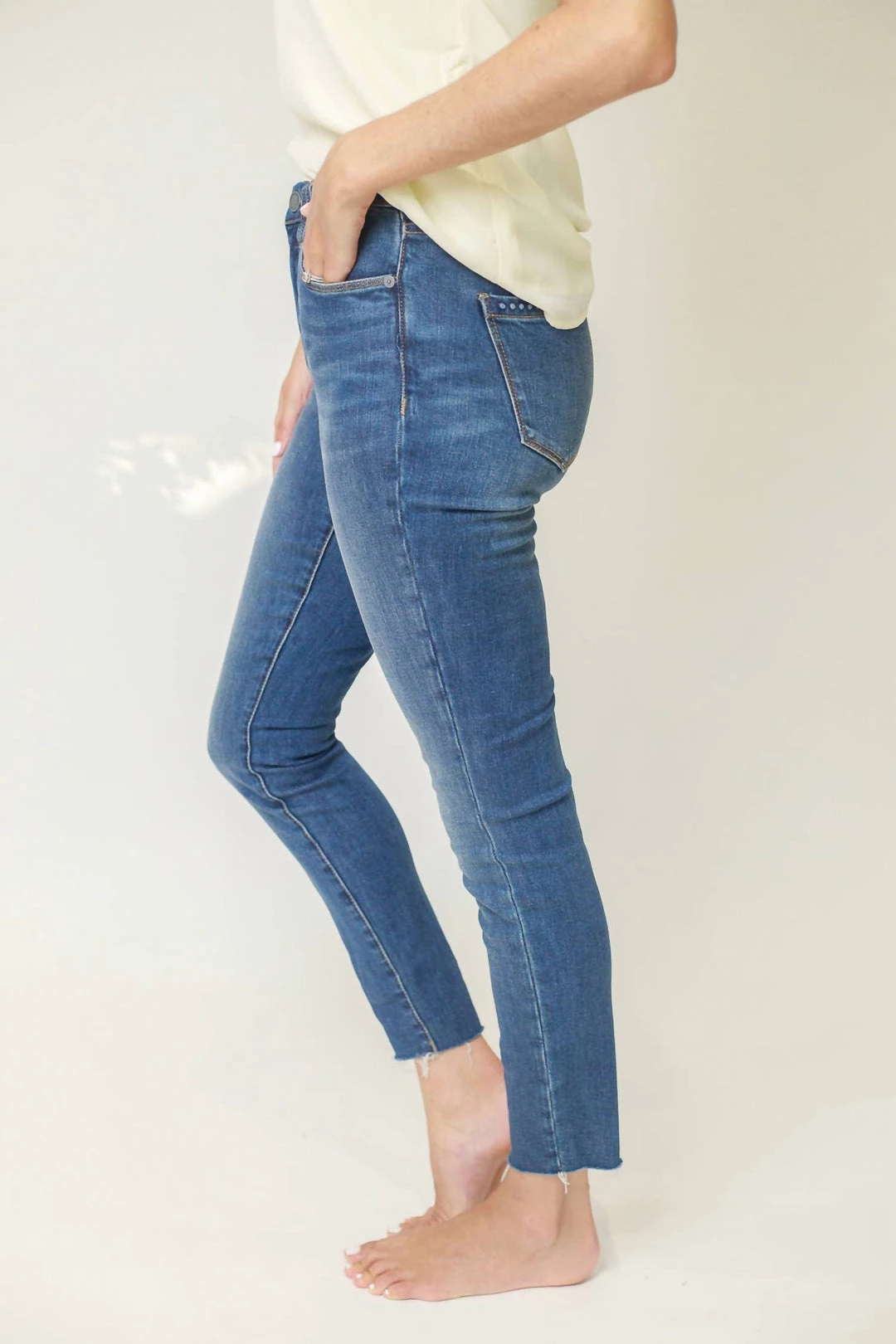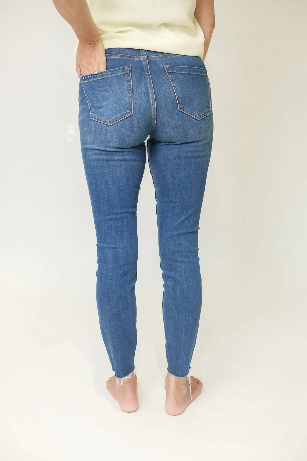 Medium wash mid rise skinny jean from Blank NYC.ΓΒ Featuring five pocket style, ” inch inseam and raw hem.ΓΒ These sleek skinnies are made out of supersoft denim stretch and give off a lived in feel with the raw ankle hem.ΓΒ ΓΒ ImportedMachine Wash & Tumble DryFits True to Size