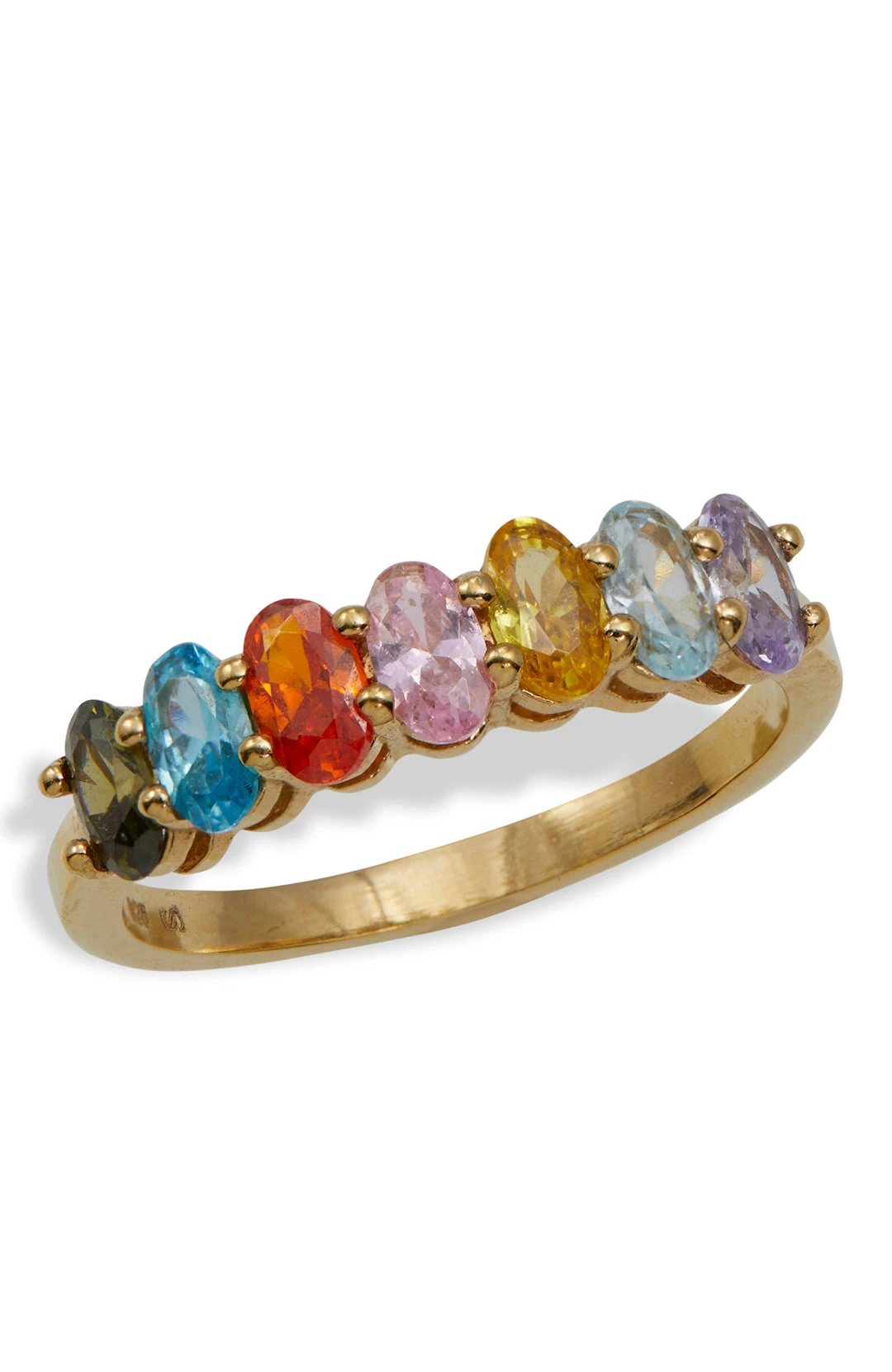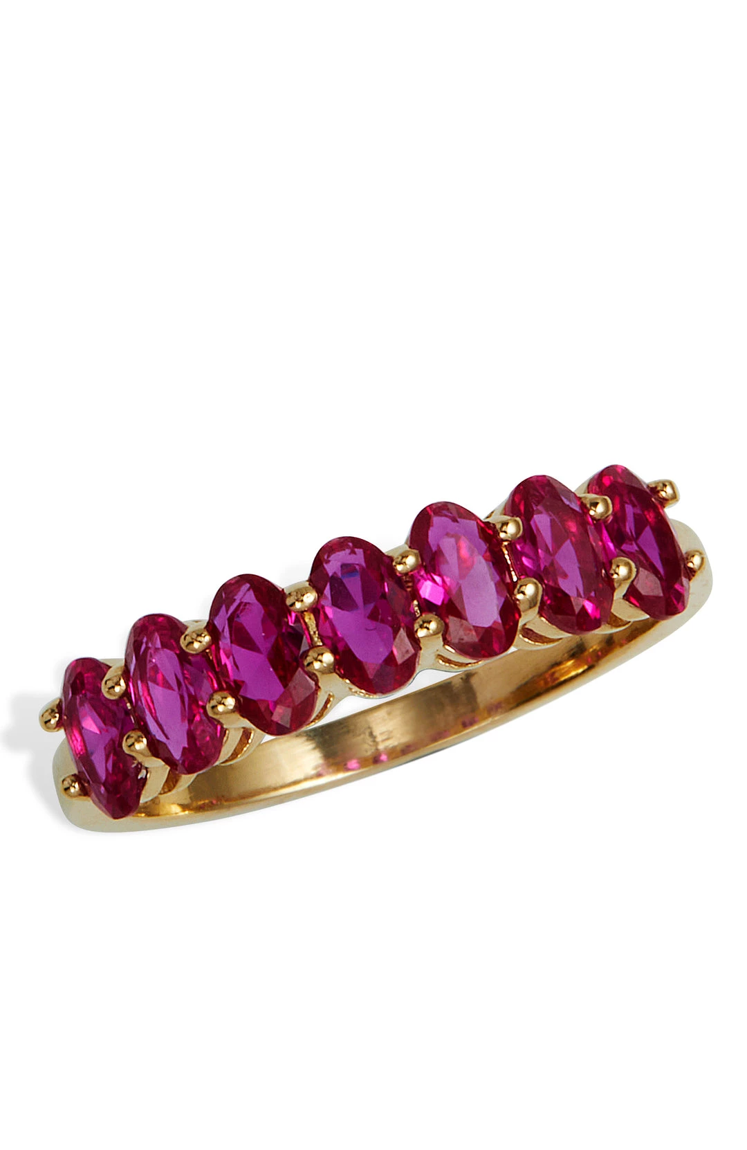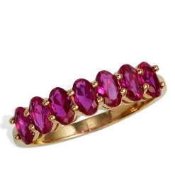 The pure beauty of red rubies appears to float on this special 18k gold band. Gemstones deliver the eye-catching color for that wow-factor! Details – Size 8