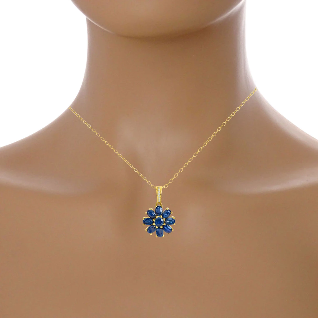 Budget 👍 Savvy Cie Jewels 👩 women 18K Gold Vermeil 5.55Gtw Blue Sapphire Flower Pendant W/ Chain 😀