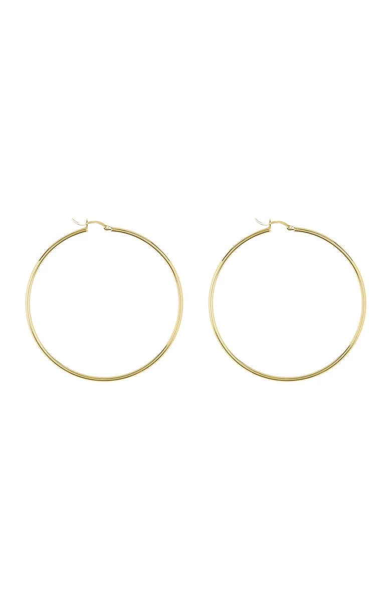 Classic large 18k gold plated hoop earrings. Sure to add that ‘something fabulous’ your outfit needs! Crafted with style in Italy, these 18k gold earrings will not disappoint. Earrings features a snap-bar enclosure and a beautiful high shine. Drop length is 58mm/2.3 inches.