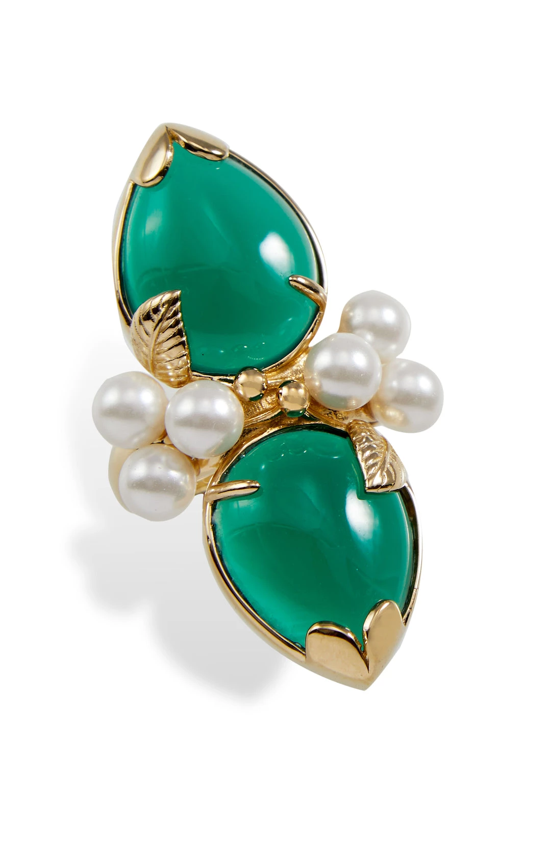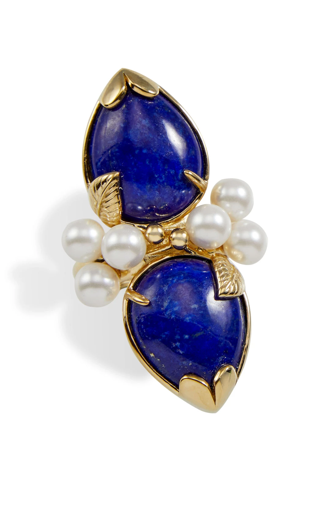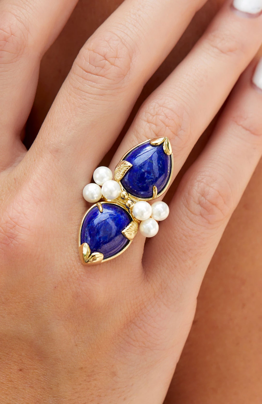 Youll never go unnoticed with this elegant 18k Gold Vermeil lapis and pearl cluster ring. Details – Size 7