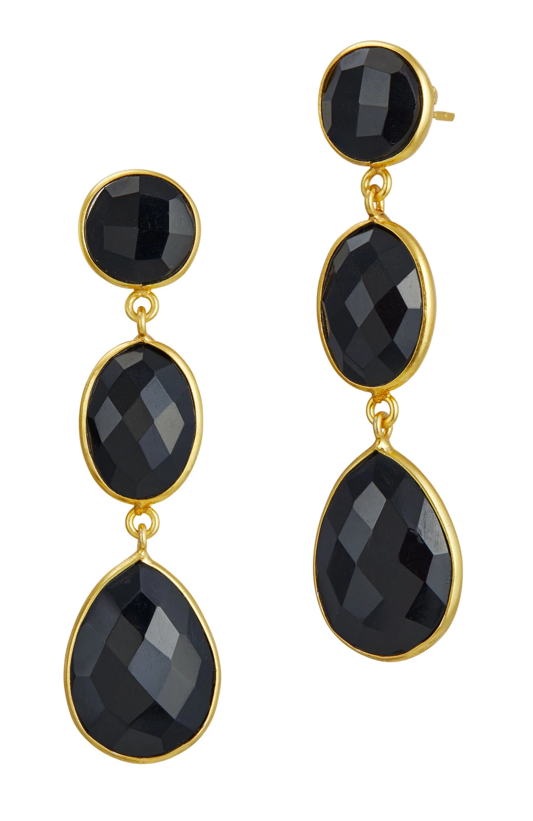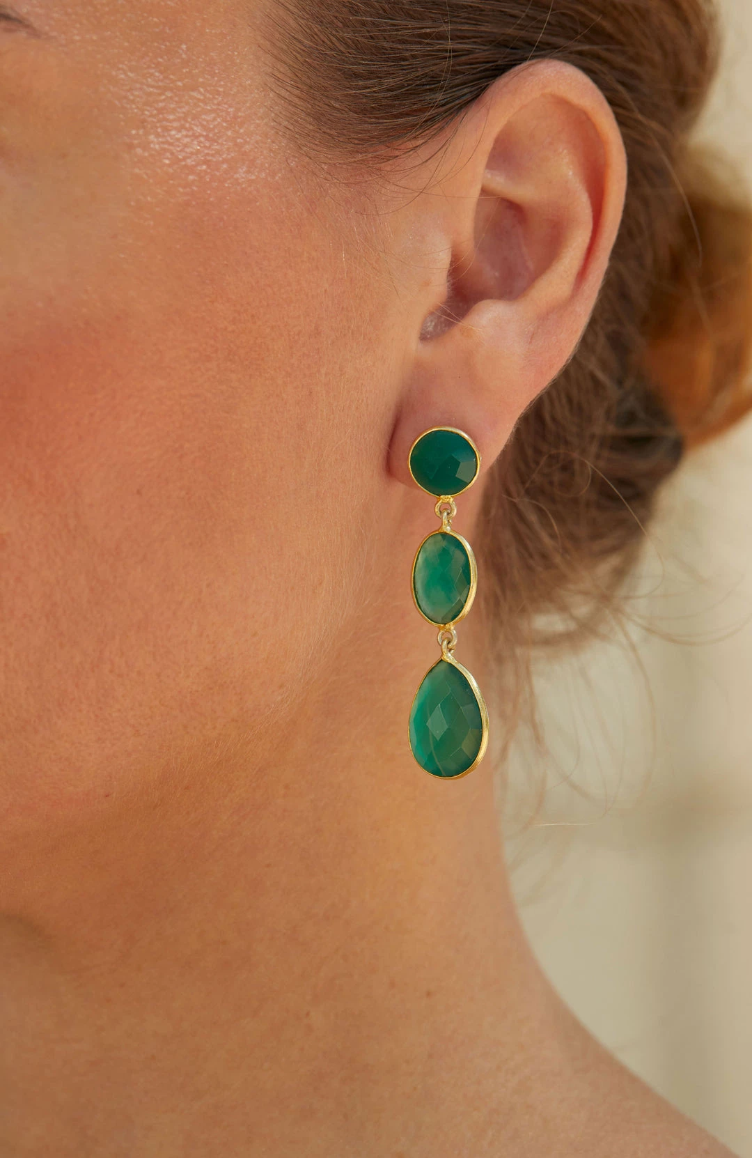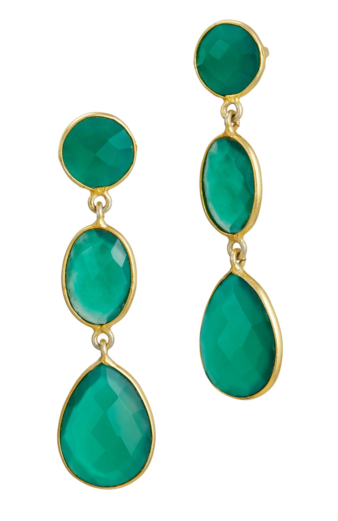 Best deal 😍 Savvy Cie Jewels 👩 women 18K Gold Vermeil Green Onyx Triple Layer Drop Earrings 🔥