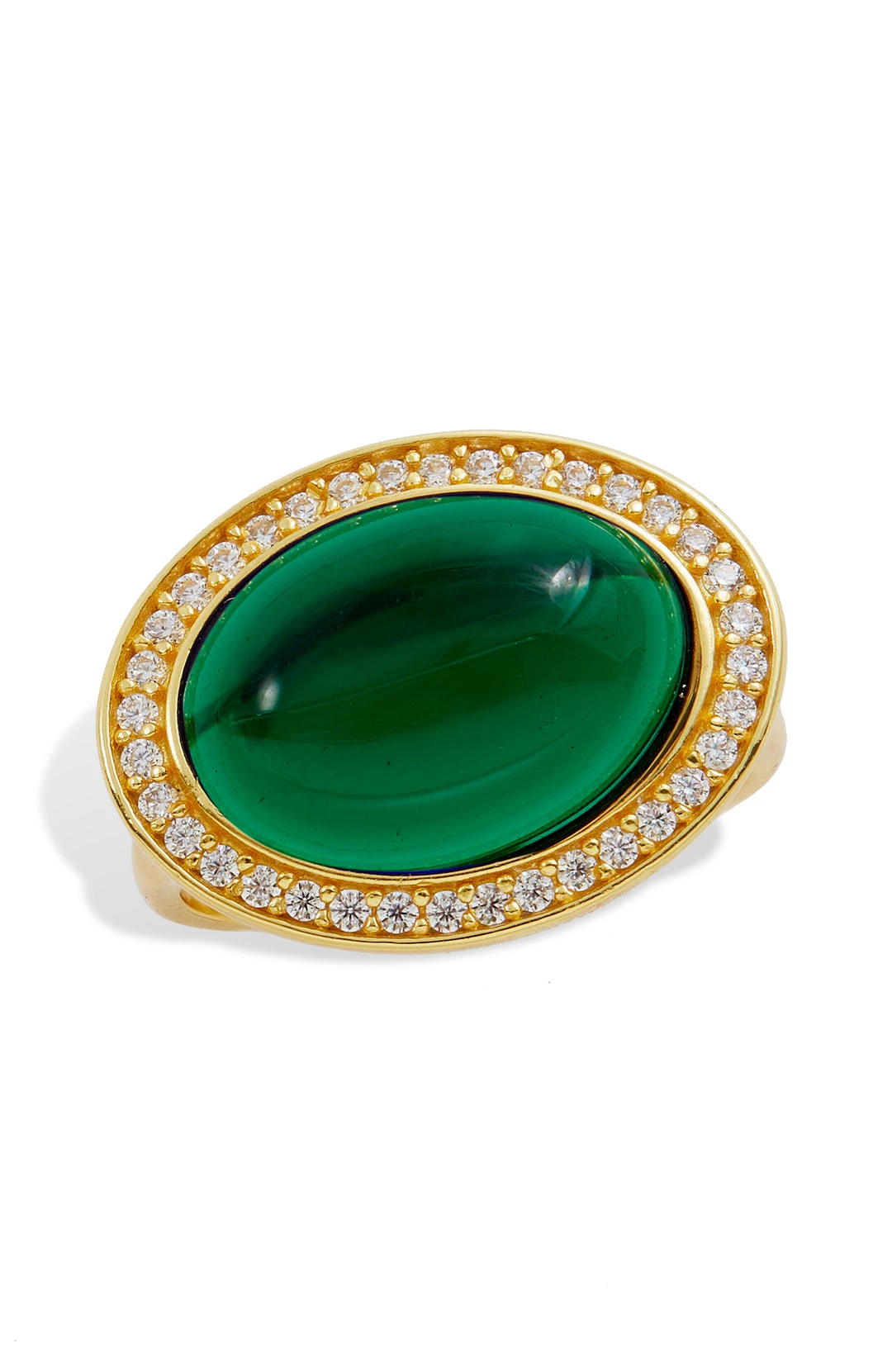 This fun ring can be incorporated to any style! The 18k Gold oval Emerald ring is a fashion statement that you’ll love! Details – Size 8