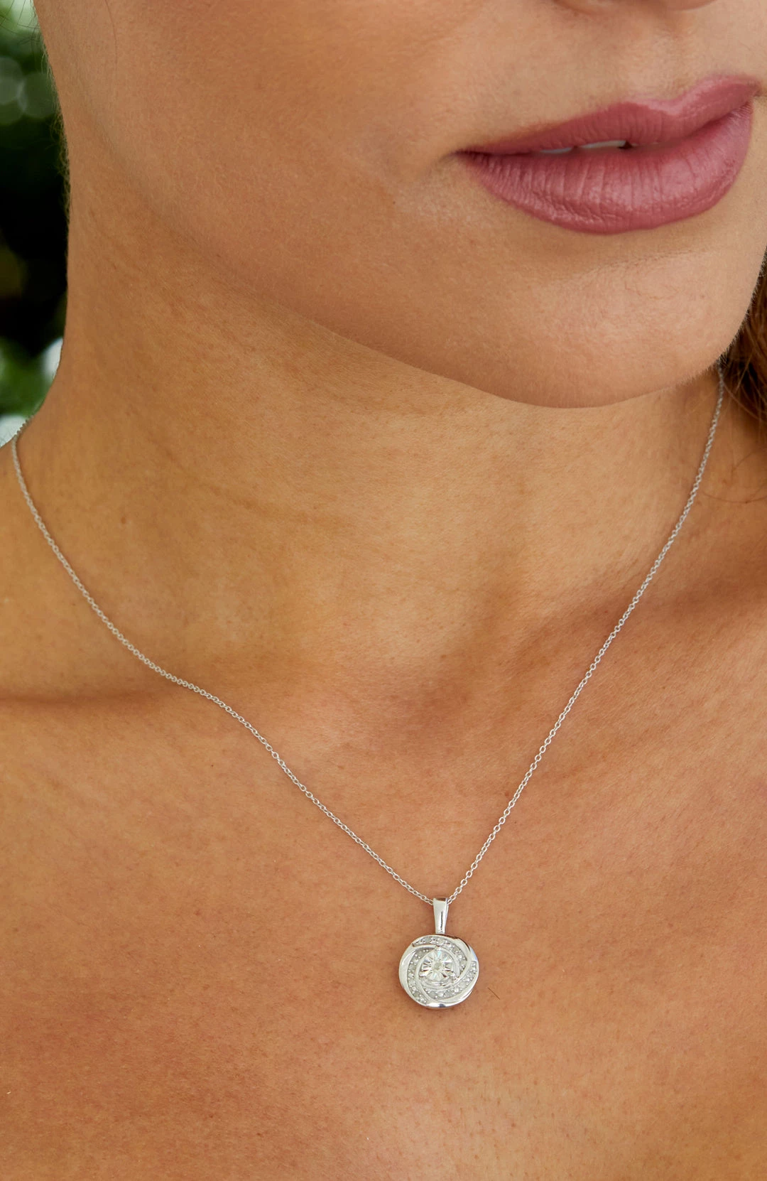 Sterling Silver Diamond Drop Pendant Necklace. A sterling silver necklace features a diamond drop pendant for dressier style.