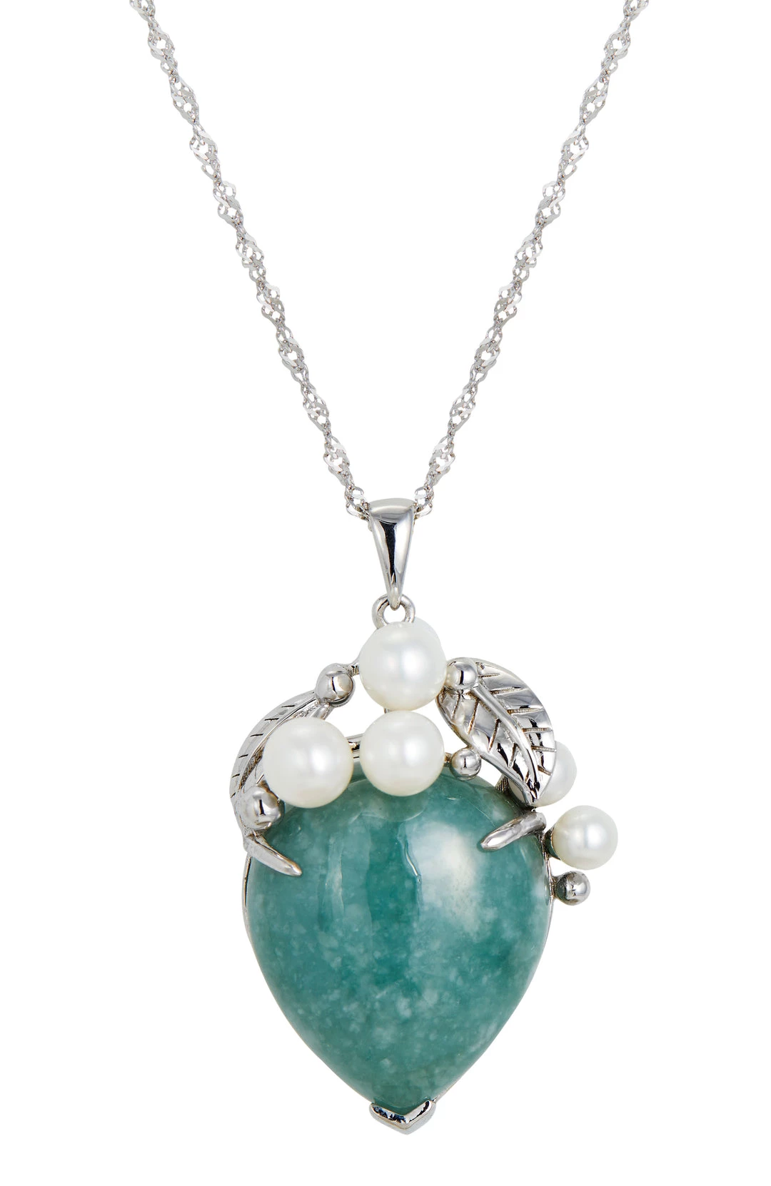 Cheap 🎁 Savvy Cie Jewels 👩 women Ss 925 Jade And Pearl Pendant W/ Chain ⭐