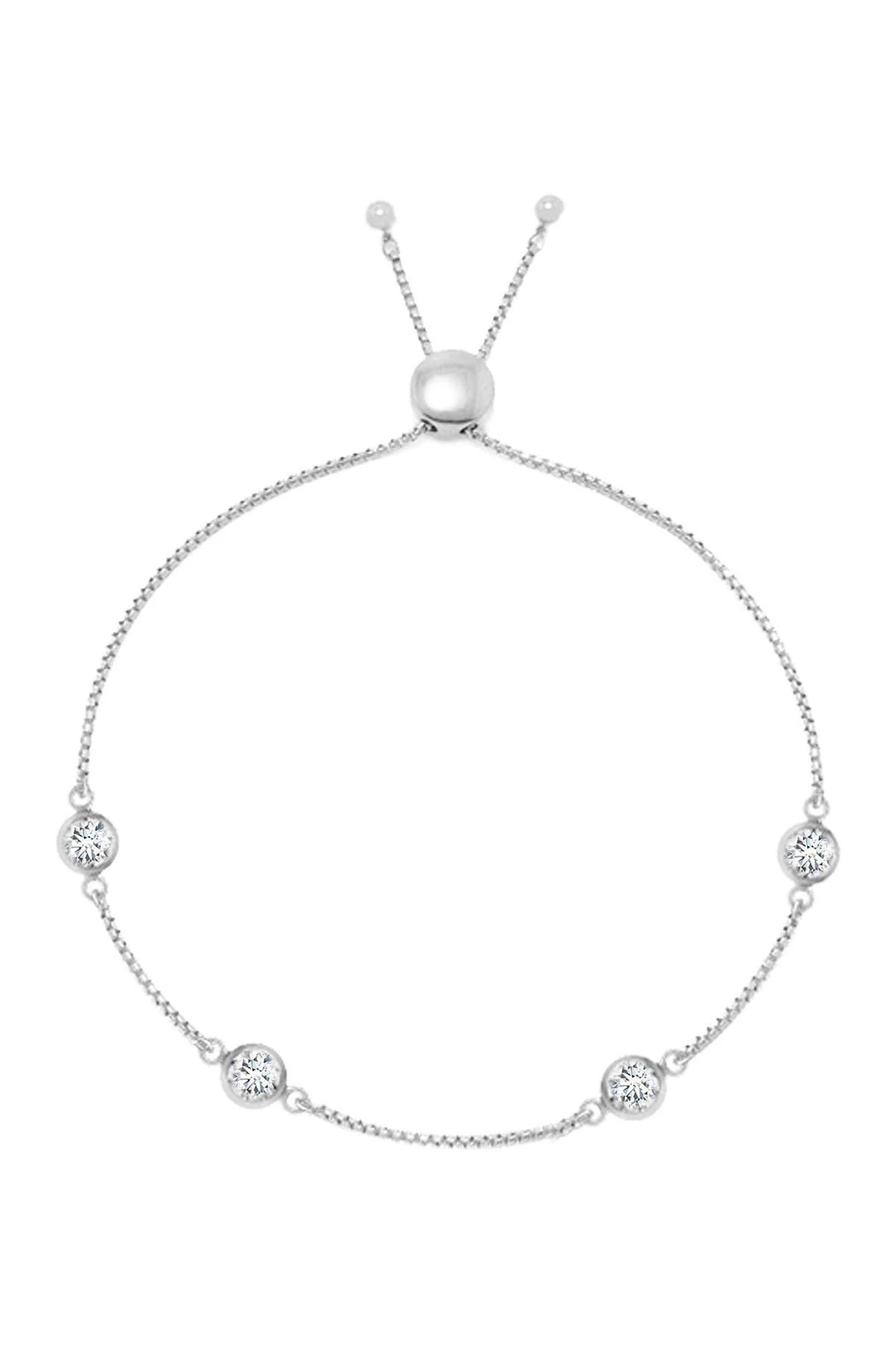 Best deal 🌟 Savvy Cie Jewels 👩 women Sterling Silver Simulated Diamonds By The Yard Bolo Adjustable Bracelet 🥰