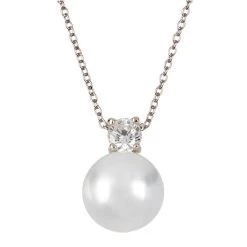 Sterling Silver CZ 8-8.5mm Swarovski Pearl Pendant Necklace. A dainty sterling silver pendant necklace suspends a bezel CZ stone and cultured pearl for beautiful sparkle.