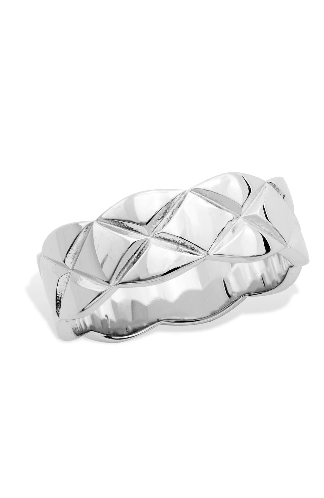 Sterling Silver Cushion Band Ring. A lattice textured sterling silver ring features a scalloped band for polished style. Classic, great every day ring!