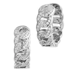 The elegance on this sterling silver hoop earrings will bring that exquisite touch to your ears! The cubic zircinia around the chain link hoop style gives it thay glamorous and delicate look.